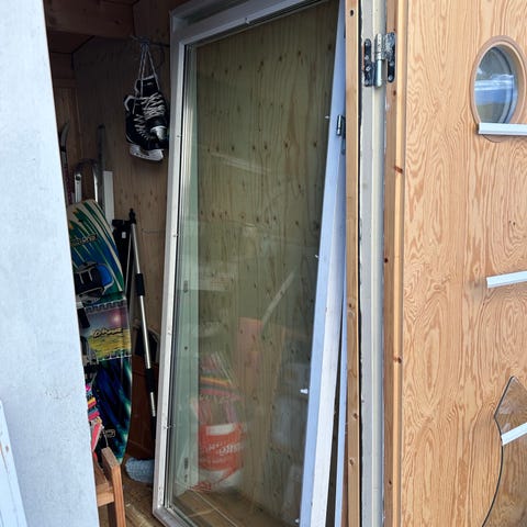 Vit inåtgående glasad altandörr med övre del i glas och nedre del i fyllning. Inköpt 2022. Passar som utgång till altan, balkong/fransk balkong. Dörren är avsedd för montering i yttervägg och har karm med beslag och handtag enligt bild. Glaspartiet släpper in ljus samtidigt som den nedre delen ger insynsskydd och stabilitet.