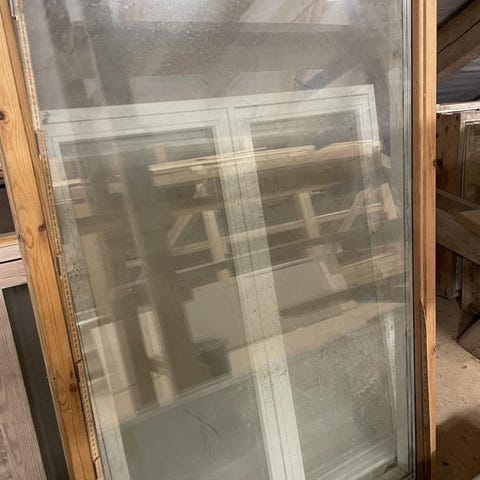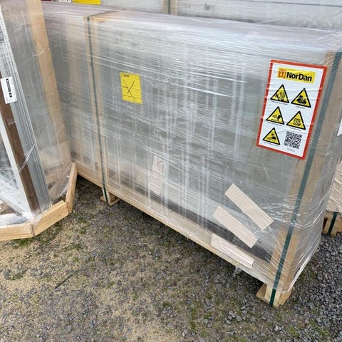 Daloc fönsterparti i vit färg. Fönstret levereras inramat i trä för transport och montering. Passar för användning i bostad eller annan byggnad där ett liggande rektangulärt fönster önskas.