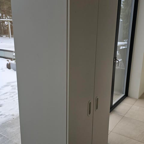 IKEA Platsa garderob med trådbackar i vit färg. Skåpet består av en stomme med flera utdragbara trådbackar som ger överskådlig förvaring. Upphängningslist med krokar ingår. Det går att lägga till flera tillval från IKEA:s "hjälpa" serie. Passar för förvaring av kläder, textilier eller andra hushållsartiklar i sovrum, hall eller förråd. Säljes pga vi har flyttat och har inte plats till garderoben längre.
