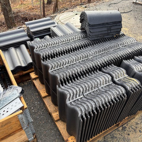 Benders candor, enkupig svart hel pall+. Ingår även ca 15st nockpannor. Ca 20m2.
