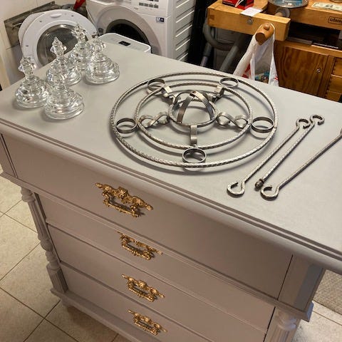 Jätte vackert bordslampa i tenn, Strindberg-stil med opalvit-skärm