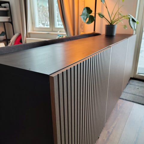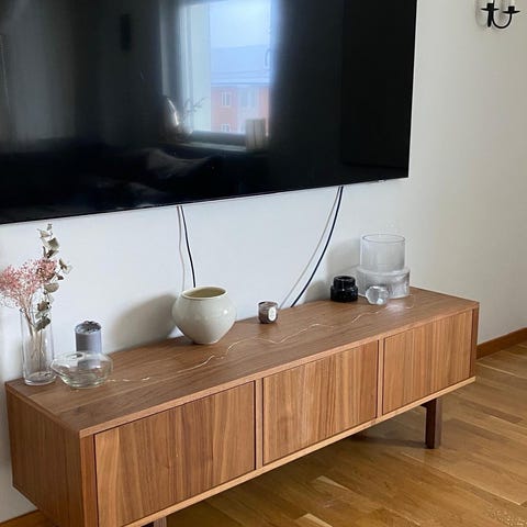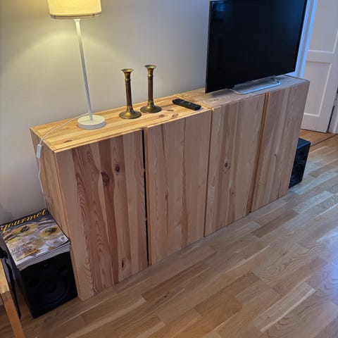 Notis: I ett av skåpen har jag gjort en litet hål för kablar till Tv/etc. Se bild 3.