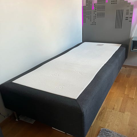 Vit 90 cm. enkelsäng med ribbotten och förvaring