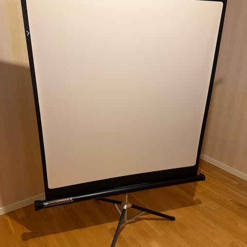 Fin bioduk / filmduk från Media Mount på 90” i 16:9 format. Den mäter ca 215cm på längden. Rullens fjäder fungerar perfekt och rullar upp som den ska. Enkel att fästa på väggen.