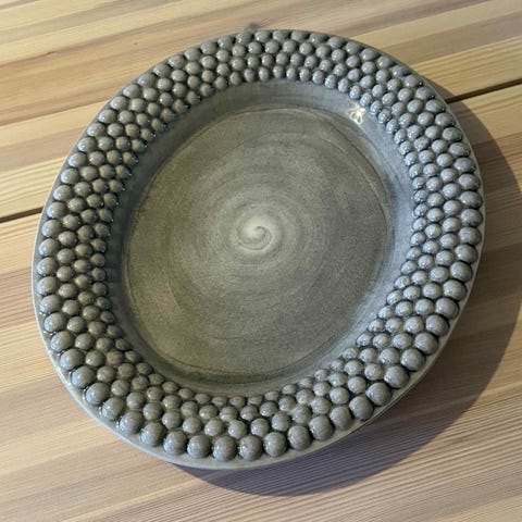 Två stora serveringsfat, 37 cm. Ett grå och ett beige.