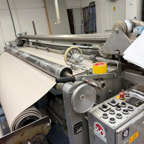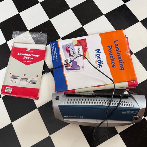 Lamineringsmaskin i fungerande skick. Inga kända fel har noterats. Lasthjälp finns på plats enligt överenskommelse med säljare.