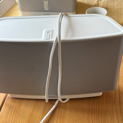2 vita Sonos play one högtalare.