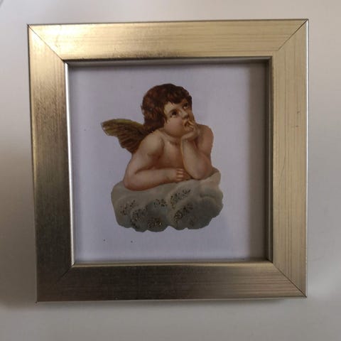 Gammal fin träram som har bemålats med guld efter det att tavlan ramades in.