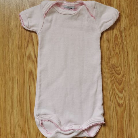 Newbie body för flicka i storlek 80. Långärmad modell i rosa ribbad trikå med volangdetaljer vid axlarna. Knäppning med tryckknappar i grenen och baktill vid halsen för enklare av- och påklädning. Passar som vardagsplagg eller under andra kläder.