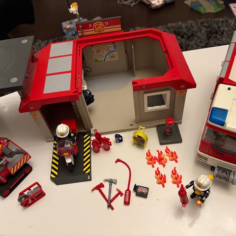 Innehåller brandmän, cykel, inredning och verktyg, dock inte helt komplett, men det mesta är med.