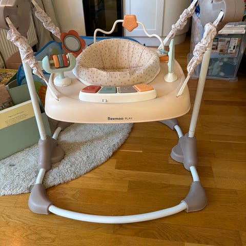 2-i-1 hoppgunga från Baby Einstein med femton aktiviteter med tre inlärningslägen för ditt barn att utforska. Den har en höjdjusterbar sits och kan snurra runt i 360 grader. Perfekt för att göra lärande roligt!