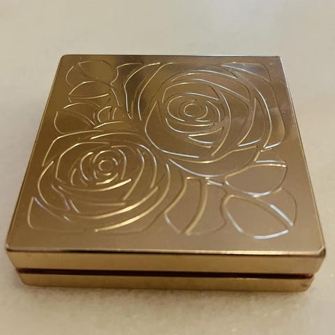 Spegel-puderdosa, Vintage ”Goldtone Compact ”lövdesign med spegel