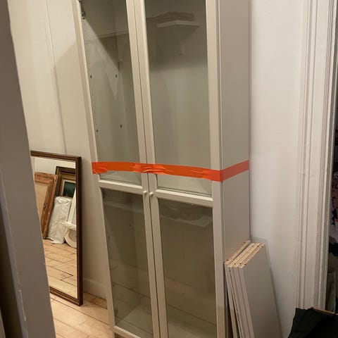 Skåpen sitter tillfälligt ihop, men har alltid stått enskilt och alla delar och lister finns såklart kvar.