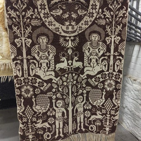 Vintage handbroderad bonad 77&51 cm . Du Sveriges bygd du väna land med vita björkar invid strand .katt finns i hemmet