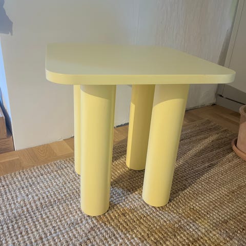 Observera att skivan har slagit sig lite, se bild. Det är dock inget som syns ovanifrån utan mer om man sitter i soffhöjd och det syns olika mycket från olika sidor.