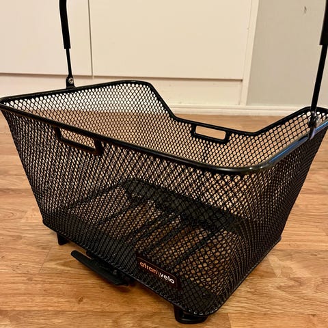 Atran Velo cykelkorg för montering bak på cykel. Korgen är tillverkad i svart metallnät med stabil botten och integrerat fäste för pakethållare. Utrustad med dubbla bärhandtag för enkel av- och påtagning. Passar för transport av väskor, mindre inköp eller annan packning på cykelns bakre pakethållare.