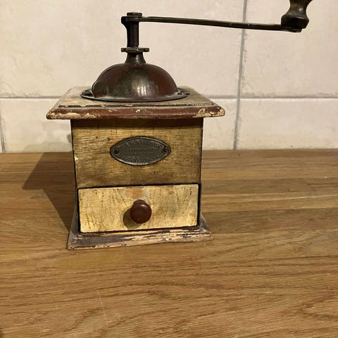 Hnadvevad kaffekvarn i trä.