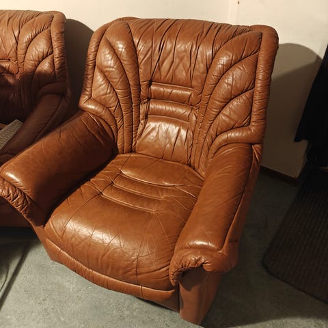 Röd läder soffa 3-sits med Fåtöljer säljes i skellefteå