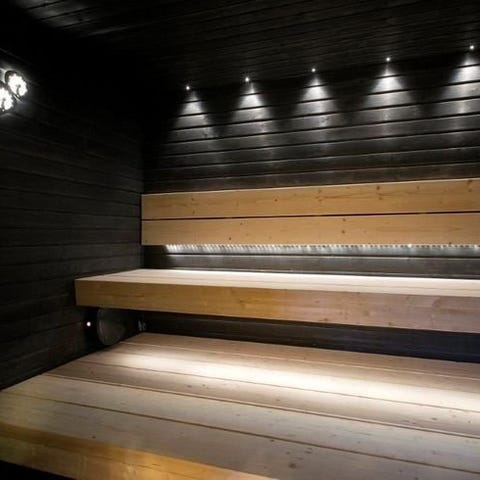 Omklädningsrum/ relax på 5kvm med sittplatser vägg i vägg med bastun.