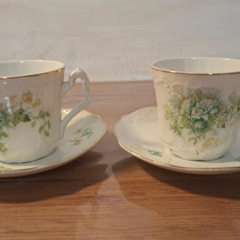 Kaffeservis med 10 koppar och fat av märket Queen Anne, England
