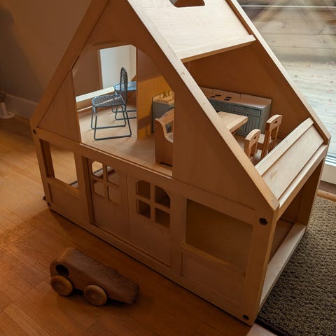 Dockmöbelset och aktivitetsbord i trä