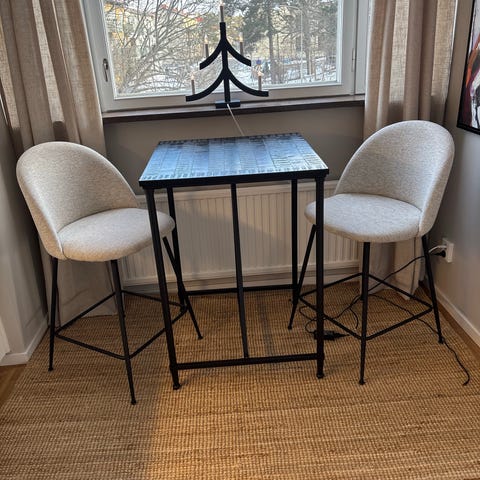 Robust barbord och stolar som är köpta i inredningsbutik. 15 år gammalt.