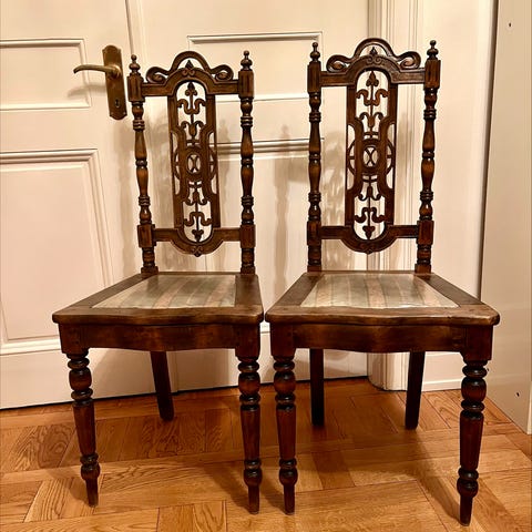 Unika snidade trästolar – 4 st, charmigt originalskick