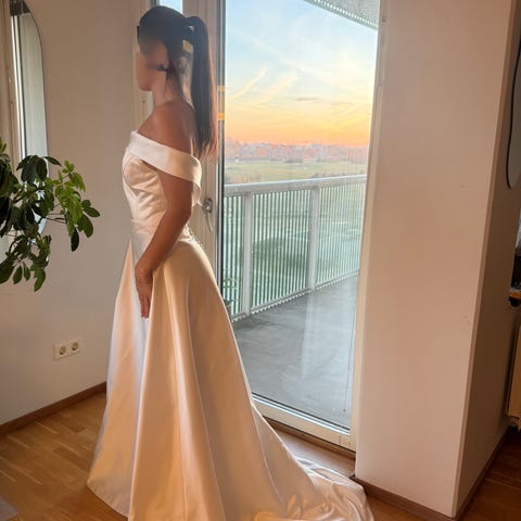 Vit bröllopsklänning storl 34