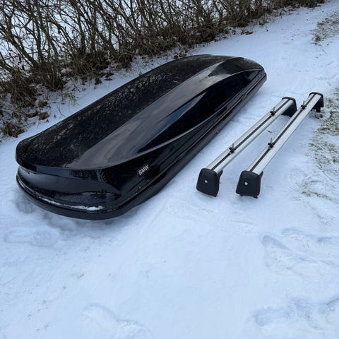 Säljer en BMW original takbox inklusive BMW‑takräcken, från 2016, som endast använts under 4 säsonger.