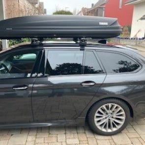 Takboxen är stor, rymlig och robust, perfekt för skidresor, sommarsemester eller när extra lastutrymme behövs. Den öppnas smidigt och sitter stabilt på räckena. Passar BMW‑modeller utrustade för denna typ av fästen (universell passform kan variera beroende på bilmodell).