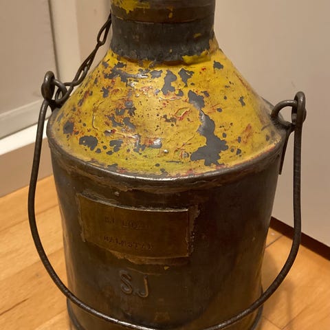 Säljer en äldre brandsläckare i koppar/mässing, troligen från tidigt 1900-tal.