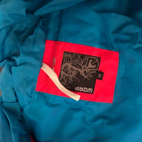 Skidset med jacka och byxa i beige och svart. Jackan har huva och hög krage med mjukt foder samt dragkedja framtill. Byxorna har hängslen, dragkedja och knappstängning i midjan. Setet är avsett för skidåkning och utomhusaktiviteter i kallare väder.