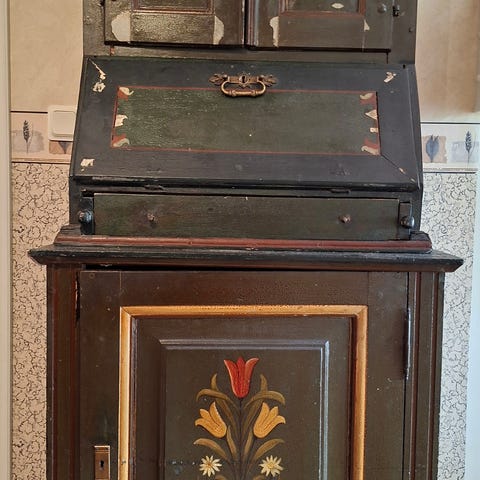 Gammalt kassaskåp, troligtvis antikt. Två nycklar. Tungt. Bortskänkes mot hämtning.
