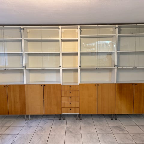 Stor o fin bokhylla bortskänkes mot nedmontering och bortforsling. Delbar i sektioner.