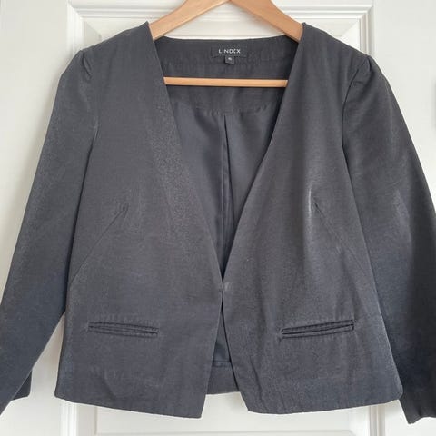 Jc kavaj för dam i svart färg. Storlek M. Enkelt knäppt framtill med knapp och med fickor framtill. Passar till vardag och arbete eller som del av en mer uppklädd outfit. Är från jc.. men fanns inte i listan