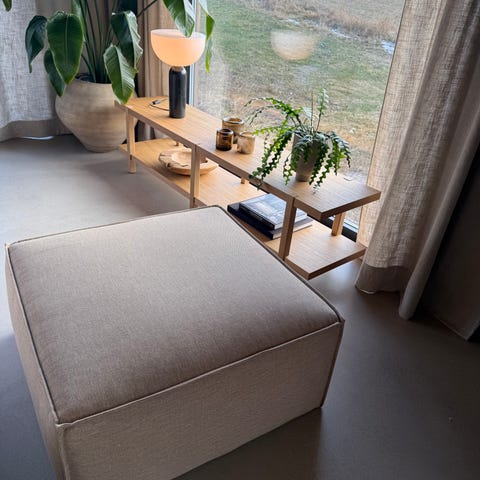 Pallen är användbar i flera sammanhang. Exempelvis som ett skönt sträcka ut till fåtölj eller soffa. Precis som att det går att ställa den fristående vid ett soffbord. Lägger man något skyddande över t ex frottéhandduk fungerar den bra som lekarena för barn, lagom höjd.