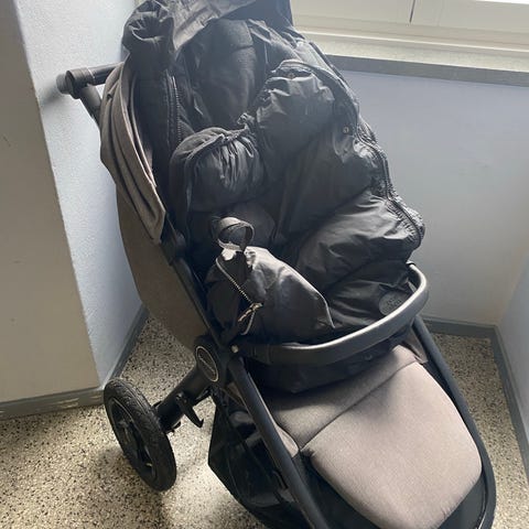 Beemoo Easy Fly 2 sulky i svart och grått tyg. Vagnen har justerbart ryggstöd, fempunktssele och avtagbar bygel. Går även att fälla ner ryggstödet till liggläge som är praktiskt för små barn.