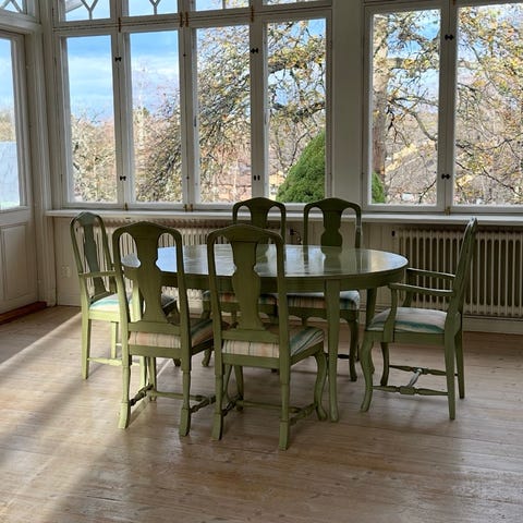 Gediget vackert äldre Matbord Bondrokoko med 6st stolar Vintage