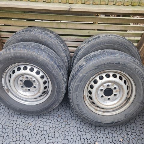 4 sommardäck, 2 vinterdäck på VW stålfälg. Sommardäcken använda, ca 7mm mönster kvar.