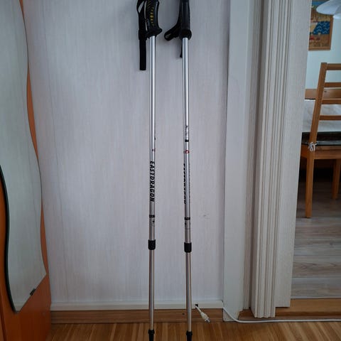 Vandringsstav som är lång nog (upp till 140 cm) för turåkning vintertid.