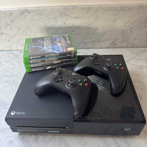 Microsoft Xbox One spelkonsol med handkontroll och spel
