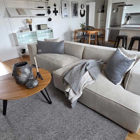 Mio soffa grå/blå tyg