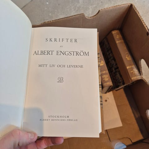 Inbundna volymer utgivna av Albert Bonniers förlag på 1940- och 1950-talet. Böckerna är namnade. Titlarna se foto