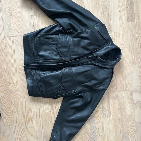 Flight jacket/Cooper skinnjacka för herr i svart färg, storlek 52. Jackan är tillverkad i äkta läder med mjukt, ljust foder i teddy-/pälsimitation. Modellen har krage, dragkedja framtill, ribbstickade muddar i nederkant och vid ärmslut samt flera utanpåfickor med lock.