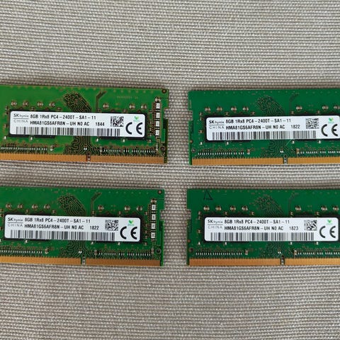 SK hynix HMA81GU6CJR8N RAM-minne på 8GB av typen DDR4 (PC4-2666V). Modulen är märkt 1Rx8 och är avsedd som internminne för stationära datorer med DDR4-plats. Lämplig för uppgradering eller utbyte av befintligt arbetsminne i kompatibla system.