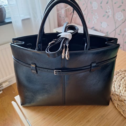 Lydia Flattered handväska för kvinna i läder. Väskan har två längre handtag för bärning i handen eller över axeln. Insidan är ljus med flera fack, inklusive ett större huvudfack där en 13 inch dator får plats, ett mindre fack med dragkedja för värdesaker samt ett fack på utsidan med magnet. Passar för vardagsbruk, arbete eller studier där det finns behov av att organisera innehållet i väskan. Nypris är 4995sek