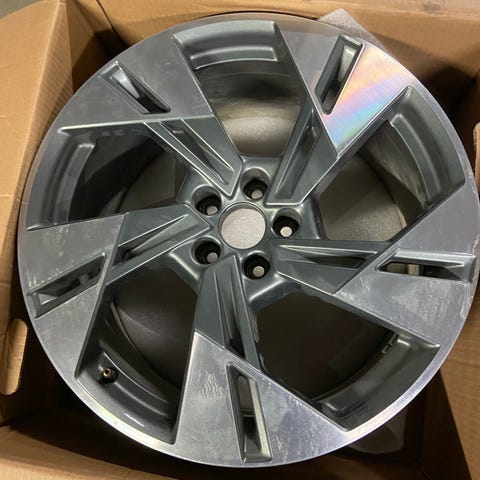 Fyra stycken aluminiumfälgar till en Tesla modell Y 19 tum använd bara en halv säsong med däcktryck sensor ingen någonting repor.
