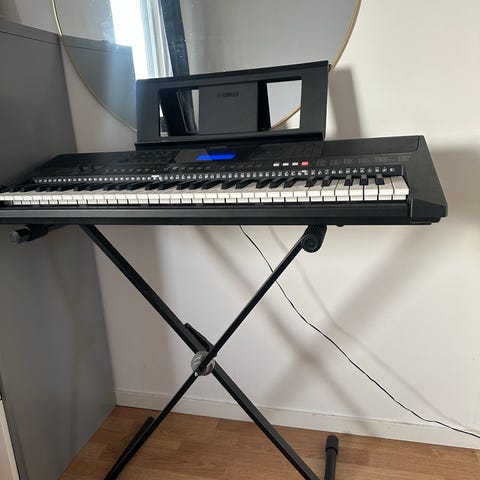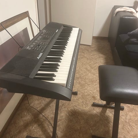 Alesis Melody 61 El keyboard/Piano med 61 fullstora tangenter i svart utförande. Keyboardet har inbyggda högtalare och ett kontrollfält med olika funktioner och inställningar som 300 olika toner och rytm. Passar för övning, hemmabruk och enklare musikproduktion. Stativ och enkel pall framgår på bilderna och kan eventuellt ingå beroende på överenskommelse. Det kommer också med piano stol, horlurar och en mikrofon med bra kvalitet.