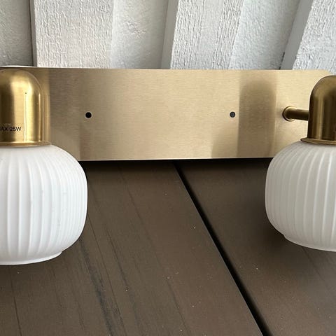 Ny oanvänd vägglampa från Markslöjd med väggfäste i mässing.