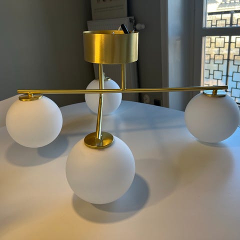Lampan kräver tre glödlampor med G9-sockel om max 20W eller motsvarande i LED, ingår ej. 2 m lång transparent kabel, strömbrytare på väggplatta.
